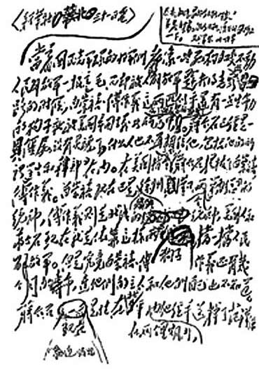 1948年10月31日,毛澤東為新華社撰寫的述評《評蔣傅軍夢想偷襲石家莊》的手稿