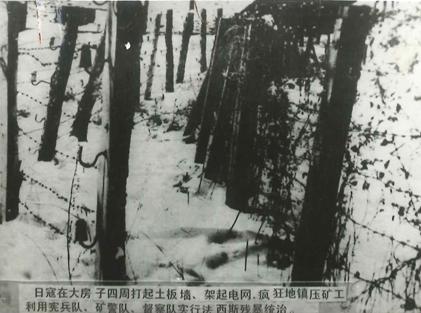 日本統(tǒng)治者為防止礦工逃跑,在山西大同礦區(qū)修建的電網(wǎng)。