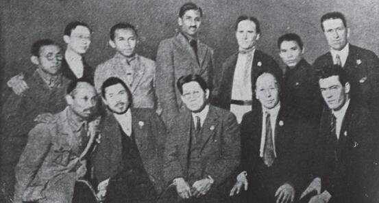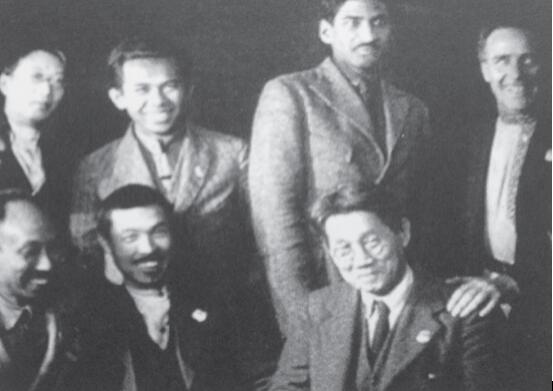 在查閱有關共產國際四大史料的時候,一幅照片引起了筆者的注意。這幅照片收錄于1964年印度孟買出版的英文版《羅易回憶錄》中,是印度共產黨代表羅易(M.N.Roy)參加共產國際四大期間與東方國家共產黨代表的合影。照片的說明文字稱,拍攝時間是1922年11月至12月,照片中前排左起第一人是印度支那代表胡志明。