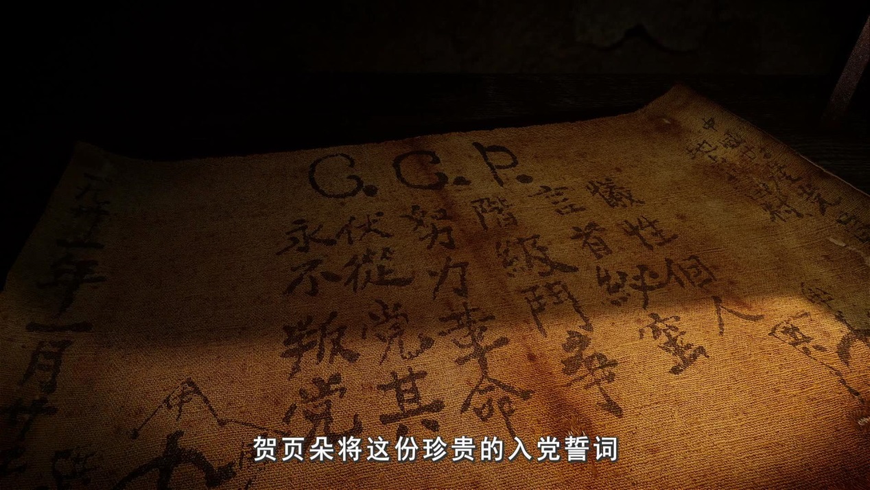 1934年,賀頁(yè)朵在一次伏擊戰(zhàn)中負(fù)了重傷。紅軍長(zhǎng)征后,他留下來(lái)堅(jiān)持斗爭(zhēng),后來(lái)在國(guó)民黨的白色恐怖下與黨組織失去了聯(lián)系。在之后的漫長(zhǎng)歲月里,他冒著生命危險(xiǎn)將寫有入黨誓詞的布條用油紙包好,藏在榨油坊的屋檐下。