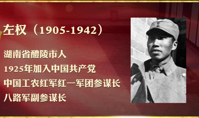 1942年5月25日,左權在山西遼縣麻田十字嶺指揮八路軍總部突圍轉移。他堅決讓彭德懷先撤退,又從容指揮大家有序疏散,完全將個人生死置之度外。不幸被日軍炮彈擊中,壯烈犧牲,年僅37歲。