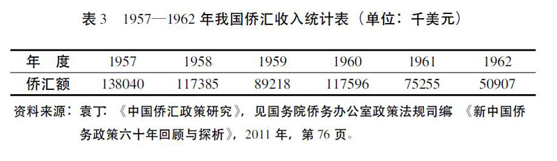 從表3 可以看出,1957—1962 年我國僑匯波動劇烈,1957 年1. 38 億美元,1962 年下降至0. 5 億多美元,減少一多半,降至新中國30 年僑匯最低點。僑匯急劇下降,加之天災人禍,國家進入三年經濟困難時期,對于僑眷歸僑來說無疑是雪上加霜。
