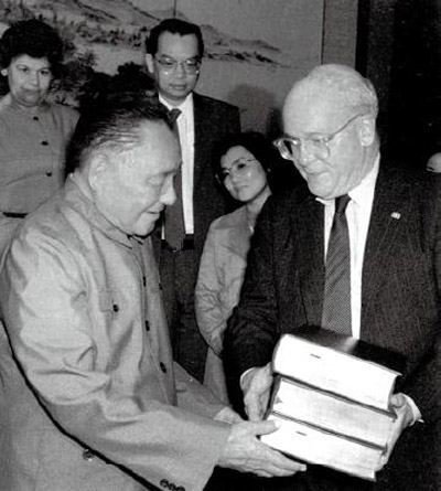 1985 年 9 月,鄧小平會見美國不列顛百科全書編輯委員會副主席弗蘭克·吉布尼,并接受贈書