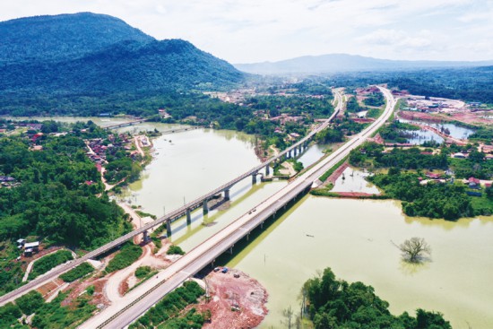 位于瀾滄江—湄公河流域的中老鐵路是中國“一帶一路”倡議與老撾“變陸鎖國為陸聯國”戰略對接項目。中老鐵路全部采用中國技術標準和管理標準建設,設計時速160公里,為電氣化客貨混運鐵路,計劃2021年12月建成通車。圖為在老撾萬象省航拍的建設中的中老鐵路(左)。 新華社發