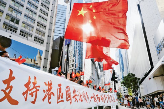 2020年6月30日,十三屆全國人大常委會第二十次會議表決通過《中華人民共和國香港特別行政區維護國家安全法》。這部法律對香港維護國家安全制度機制作出了法律化、規范化、明晰化的具體安排,為維護國家安全和香港長治久安、長期繁榮發展,保障香港居民依法享有的權利和自由,保護外國人在香港的合法權益,增強外國投資者對香港的信心,確保“一國兩制”事業行穩致遠,提供了法律支撐和根本保障。圖為6月30日,香港市民在銅鑼灣街頭支持實施香港國安法。 新華社記者 王申/攝