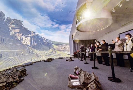 近年來,重慶紅巖革命紀念館以新技術(shù)把革命文物搬上屏幕和舞臺,創(chuàng)新革命文物展示,讓紅巖革命文物“活”起來。圖為在重慶紅巖革命紀念館“紅巖記憶”數(shù)字體驗廳內(nèi),觀眾們觀看以雙曲三維穹幕技術(shù)展示的場景。 新華社記者 李賀/攝