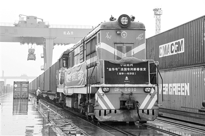 中歐班列不僅帶動(dòng)了疫情形勢(shì)下“一帶一路”沿線國(guó)家的經(jīng)貿(mào)往來(lái),而且為維護(hù)全球供應(yīng)鏈穩(wěn)定、促進(jìn)國(guó)內(nèi)國(guó)際雙循環(huán)發(fā)揮了重要作用。今年春節(jié)中歐班列一如往常繁忙,圖為2021年2月12日,滿載防疫物資等出口貨物的X8026/5次班列從浙江金華南站啟程,穿越11500多公里,奔赴法國(guó)杜爾日。(圖片來(lái)源:人民視覺(jué))