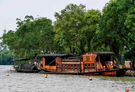 嘉興南湖景區(qū)內(nèi)停泊的中共一大紀念船(2020年7月1日攝) 徐昱攝/本刊