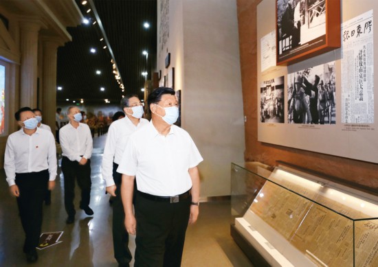 2020年8月18日至21日,中共中央總書記、國家主席、中央軍委主席習近平在安徽省考察。這是19日下午,習近平在合肥市參觀渡江戰役紀念館,重溫革命歷史,緬懷革命先輩的豐功偉績。 新華社記者 鞠鵬/攝