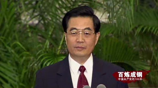 胡錦濤說:“我們一定不辜負全黨同志的重托和全國人民的期望,高舉鄧小平理論偉大旗幟,全面貫徹“三個代表”重要思想,認真落實十六大提出的各項任務,緊密團結和依靠全黨、全國各族人民,繼往開來,與時俱進,為全面建設小康社會,加快推進社會主義現代化,開創中國特色社會主義事業的新局面而努力奮斗!”