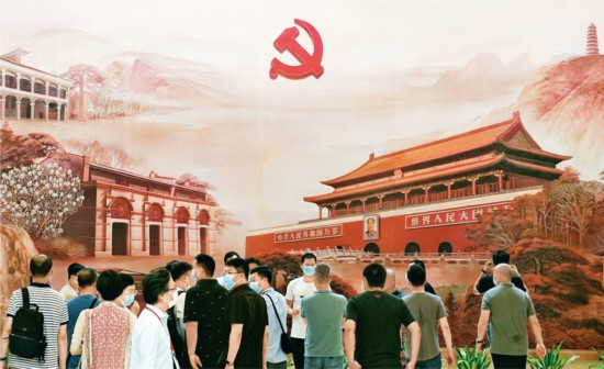 偉大建黨精神是我們黨團(tuán)結(jié)帶領(lǐng)人民不斷從勝利走向勝利的強(qiáng)大精神動力。圖為觀眾在上海中共一大紀(jì)念館的“日出東方——從石庫門到天安門”歷史組畫前參觀。 新華社記者 劉穎/攝