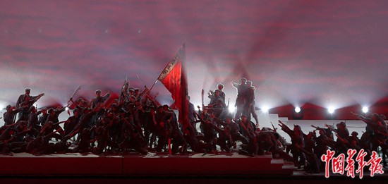 6月28日,北京國家體育場,慶祝中國共產(chǎn)黨成立100周年文藝演出《偉大征程》現(xiàn)場,戲劇與舞蹈《長征》。中青報·中青網(wǎng)記者 陳劍/攝