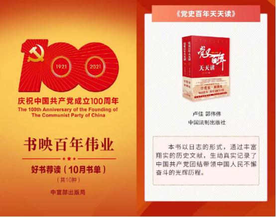 10月12日,由中央黨史和文獻研究院第七研究部編寫的《黨史百年天天讀》一書,入選中宣部“書映百年偉業——慶祝中國共產黨成立100周年好書薦讀”10月書目。