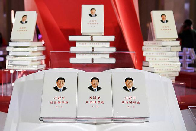 習近平新時代中國特色社會主義思想是當代中國馬克思主義、二十一世紀馬克思主義,是中華文化和中國精神的時代精華,實現了馬克思主義中國化新的飛躍。圖為《習近平談治國理政》第三卷在上海書展展出。