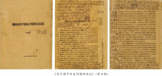1935年1月召開的遵義會議,結束了“左”傾錯誤路線在黨內的統治地位,但由于長征途中形勢危急,沒有對政治路線問題進行全面討論,產生“左”傾錯誤的思想根源沒有得到徹底清算,導致在此后的一段時期中,全黨上下依然存在著一定的思想困惑,對革命斗爭造成了負面影響。延安時期,陜甘寧邊區環境相對穩定,中央有條件著手解決歷史上遺留下來的路線問題,并將總結歷史經驗作為整風的重要形式。隨著整風運動的全面展開,全黨的馬克思主義理論水平得到了空前提高,系統總結黨的歷次錯誤,進一步統一全黨思想的條件已經成熟。1944年5月,中央書記處會議決定成立以任弼時為召集人的黨內歷史問題決議準備委員會。在任弼時、張聞天、胡喬木等人的努力下,經過多次易稿和修改,很快形成了決議草稿。1945年春,毛澤東開始親自動筆,對文稿進行了至少七次修改。據胡喬木回憶,第四次、第五次、第六次修改均在同一份鉛印稿上進行。中國共產黨歷史展覽館陳列的正是這三次修改的底稿。其中,第四次主要是對文字進行潤色,第五次主要是在開頭部分增加了一段話,第六次是胡喬木匯總毛澤東等人的意見而作一次局部性修改。這一修改稿上除了毛澤東的筆跡之外,還有其他領導同志的少量筆跡。1945年4月20日,決議被提交六屆七中全會進行討論,并獲通過。