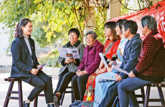 為深入學習貫徹黨的十九屆六中全會精神,浙江省湖州市德清縣雷甸鎮組建“特色宣講小分隊”,組織鎮村干部、人大代表、青年黨員等深入鄉村、社區、學校和企業等宣講全會精神。圖為2021年11月25日,德清縣人大代表李良英(左一)為群眾宣講全會精神。 求是圖片 王樹成/攝