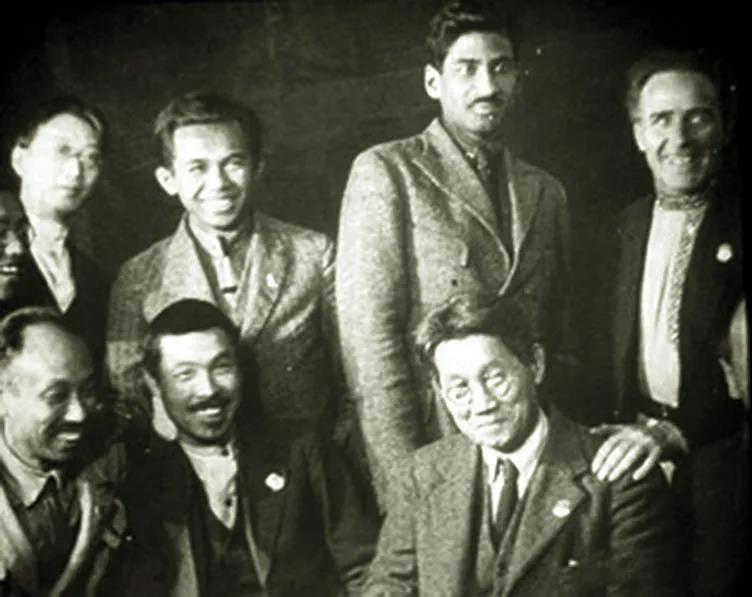 1922年共產國際第四次代表大會上的陳獨秀(前排左一)和瞿秋白(后排左一)等。