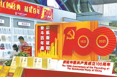 圖為市民在北京圖書大廈“習近平新時代中國特色社會主義思想”主題出版物專柜閱讀、選購圖書。(圖片來源:人民視覺)