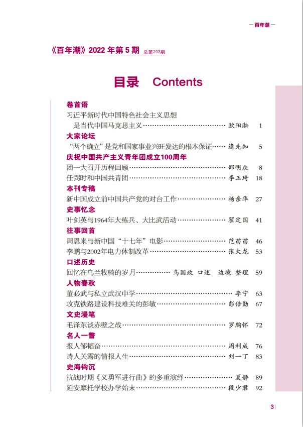 《百年潮》2022年第5期目錄
