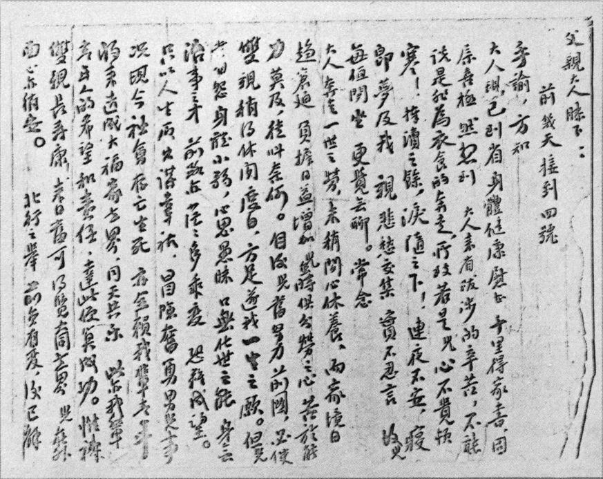 任弼時進入上海外國語學社以后,經過半年多的學習,通過讀《新青年》、讀《共產黨宣言》,從探索和比較中,找到了改造社會的理論和方向,并且很快加入了上海社會主義青年團。在這時,他思想中的愛國情懷通過與馬列主義的結合得到了升華,使得他能夠把個人的理想和抱負與人類最偉大的事業緊密地結合在一起,并由此生發出準備戰勝一切艱難困苦的勇氣和信心。1921年4月,經中國共產黨早期組織與蘇俄方面的聯絡和安排,決定分批派外國語學社學員去莫斯科學習,任弼時列名其中。他的父親得知這個消息后,于5月4日寫信給任弼時,勸他“謀事上海”,從長計議。年僅17歲的任弼時在收到父親的信以后,“捧讀之余,淚隨之下”,他“連夜不安”數日,但最后還是在啟程之日,滿懷深情地寫了一封家書。在這封家書中他寫道:“……大人奔走一世之勞,未稍閑心休養,而家境日趨窘迫,負擔日益增加,兒雖時具分勞之心,苦于能力莫及,徒叫奈何。自后兒當努力前圖,必使雙親稍得休閑度日,方足遂我一生之愿。……只以人生原出謀幸福,冒險奮勇男兒事,況現今社會存亡生死,亦全賴我輩青年。將來造成大福家世界,同天共樂,此亦我輩青年人的希望和責任,達此便算成功。”