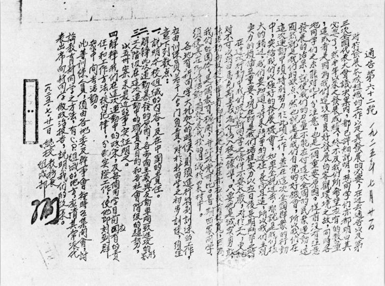 任弼時以總校教務長、組織部(團中央的代號)的名義簽發的第六十二號通告
