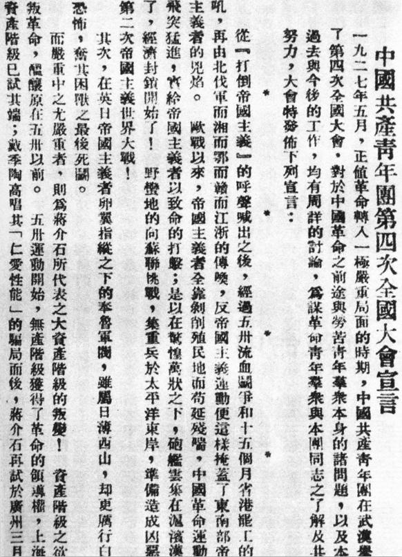 刊登在《中國青年》上的《中國共產青年團第四次全國大會宣言》