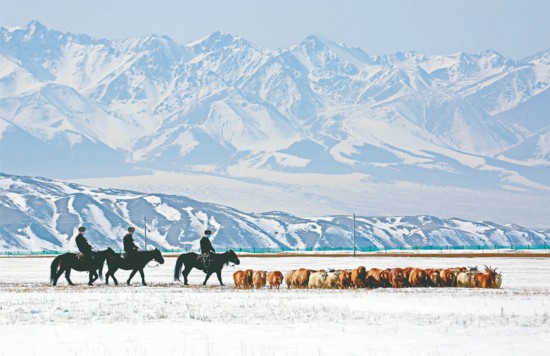 在新疆維吾爾自治區(qū)哈密市乃楞格爾草原,活躍著一支由新疆出入境邊防檢查總站哈密邊境管理支隊前山邊境派出所組建的“馬背服務(wù)隊”。從送法上門到惠民政策宣傳、從牧區(qū)巡邏到應(yīng)急救援,這支服務(wù)隊把“我為群眾辦實事”落到實處。圖為“馬背服務(wù)隊”的民警為轉(zhuǎn)場牧民開展巡邏服務(wù)。 求是圖片 蔡增樂/攝