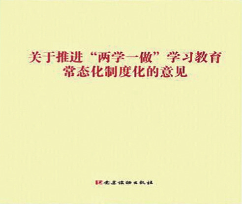 推進(jìn)學(xué)習(xí)教育常態(tài)化制度化。2017年3月,中共中央辦公廳印發(fā)了《關(guān)于推進(jìn)“兩學(xué)一做”學(xué)習(xí)教育常態(tài)化制度化的意見》。意見健全完善常態(tài)化開展“兩學(xué)一做”學(xué)習(xí)教育的制度載體。把學(xué)黨章黨規(guī)、學(xué)系列講話作為各級黨委(黨組)理論學(xué)習(xí)中心組學(xué)習(xí)的主要內(nèi)容。把“兩學(xué)一做”學(xué)習(xí)教育納入黨支部“三會一課”等基本制度。4月16日,中央組織召開推進(jìn)“兩學(xué)一做”學(xué)習(xí)教育常態(tài)化制度化工作座談會,要求各級黨委認(rèn)真落實主體責(zé)任,把“兩學(xué)一做”學(xué)習(xí)教育常態(tài)化制度化作為深化全面從嚴(yán)治黨的重要任務(wù),以學(xué)習(xí)教育的新成效迎接黨的十九大勝利召開。此后,“兩學(xué)一做”學(xué)習(xí)教育轉(zhuǎn)入常態(tài)化制度化推進(jìn)階段。