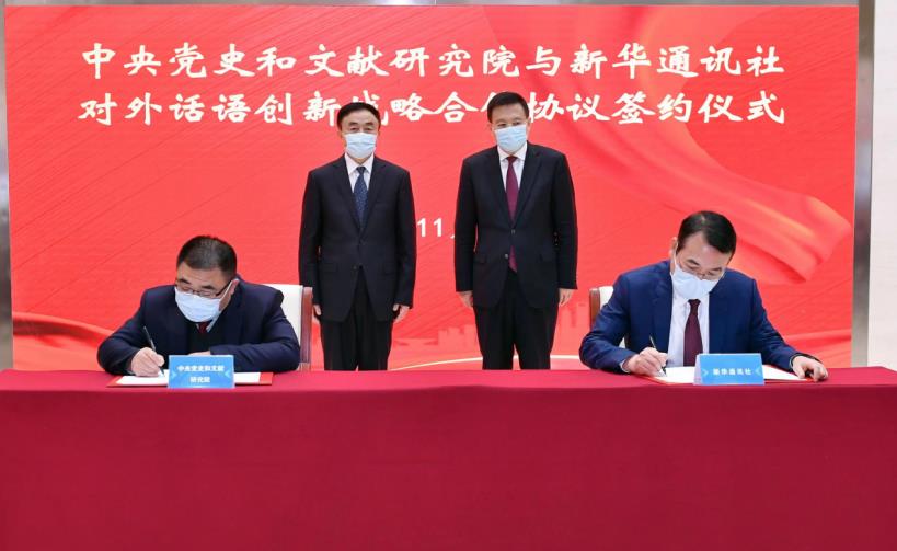 中央黨史和文獻研究院與新華通訊社簽署對外話語創新戰略合作協議