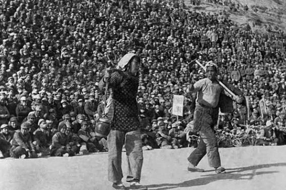 文藝工作者在延安為群眾演出秧歌劇《兄妹開荒》
