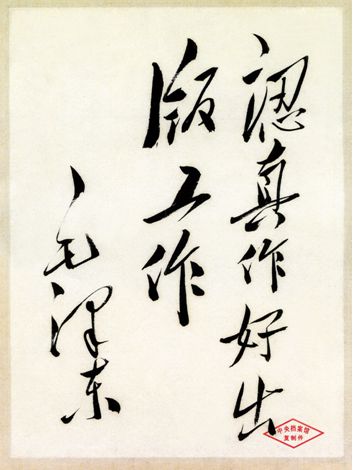 毛澤東為全國新華書店出版工作會議題詞:認真作好出版工作。