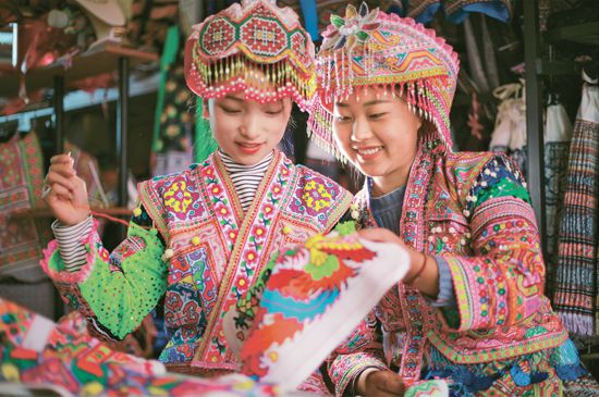 鞏固拓展脫貧攻堅成果是全面推進鄉(xiāng)村振興的底線任務。近年來,貴州省黔西市紅林彝族苗族鄉(xiāng)依托當地豐富的刺繡、蠟染等非物質文化資源,巧用“指尖經濟”助力脫貧、推進鄉(xiāng)村振興。圖為2023年1月6日,苗族婦女在紅林彝族苗族鄉(xiāng)漁塘村“刺繡作坊”里刺繡。 人民圖片 周訓超/攝