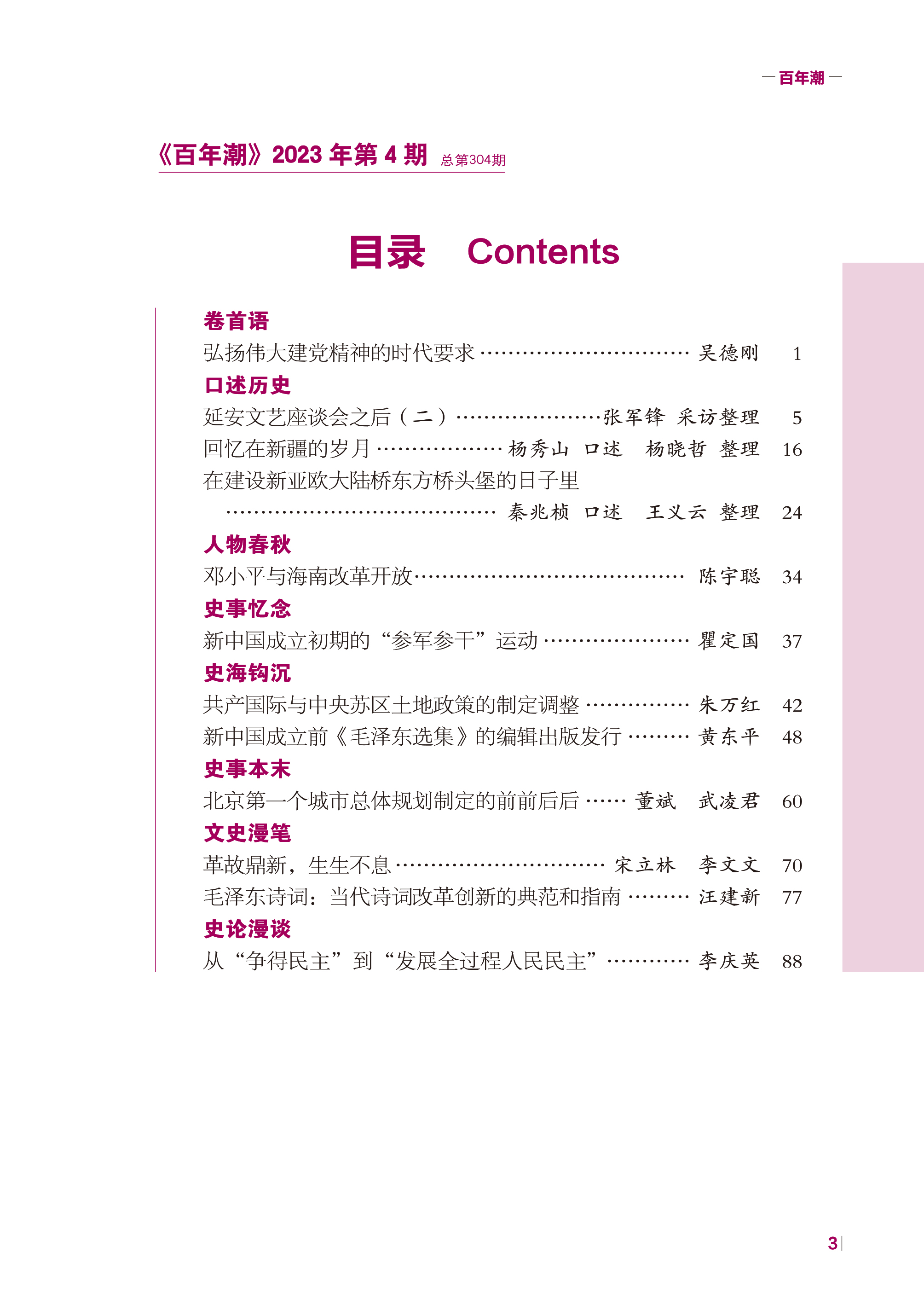《百年潮》2023年第4期目錄