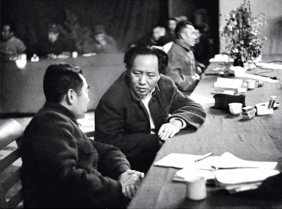 1945年召開的黨的七大,確立毛澤東思想為黨的指導思想,使全黨在思想上政治上組織上達到空前統一和團結。圖為毛澤東、周恩來、朱德同志在七大主席臺上。 新華社發