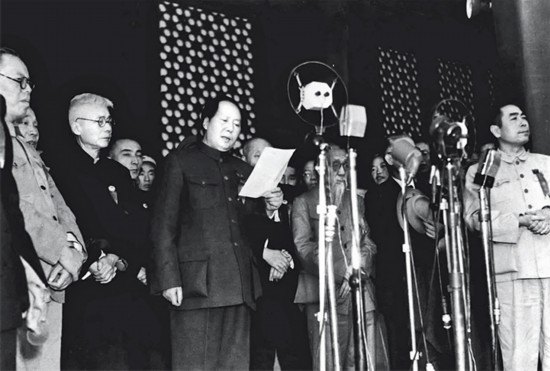 1949年10月1日下午3時,開國大典在天安門廣場隆重舉行。毛澤東同志莊嚴宣告:“中華人民共和國中央人民政府今天成立了。” 新華社發