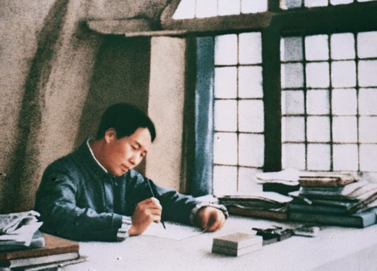 《論持久戰》是毛澤東同志1938年5月26日至6月3日在延安抗日戰爭研究會的講演。這部著作,處處充滿了辯證法,充滿了唯物主義,是抗日戰爭期間毛澤東同志最重要的軍事論著。圖為1938年,毛澤東同志在延安窯洞內撰寫《論持久戰》(資料照片)。 新華社發