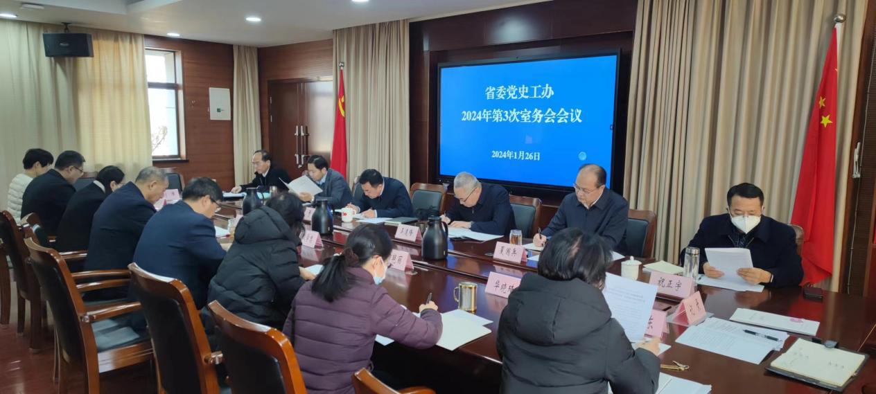 1月26日,江蘇省委黨史工作辦公室召開室務會(擴大)會議,傳達學習貫徹全國黨史和文獻部門主要負責人會議精神。江蘇省委黨史工作辦公室主任于陽主持會議并講話,副主任吳逵隆、楊中華、夏國兵,一級巡視員萬建清,江蘇省紀委監委派駐省委辦公廳紀檢監察組副組長祝正宇,以及江蘇省委黨史工作辦公室各處(社)主要負責人參加會議。