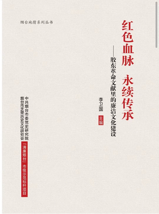 為深入貫徹落實山東省煙臺市委、市紀委監委關于爭做清廉建設標桿城市、擦亮“清廉煙臺”城市品牌的部署要求,2023年,煙臺市委黨史研究院與煙臺市芝罘歷史文化研究會以廉潔文化建設為主題,以膠東革命文獻為支撐,發揮職能優勢,謀劃申報了“清廉煙臺”市級示范標桿項目,聯合編寫形成《紅色血脈 永續傳承——膠東革命文獻里的廉潔文化建設》。