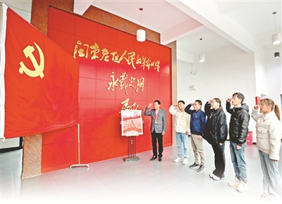 福建省福安市紀委監(jiān)委用好本地紅色資源,推動紀檢監(jiān)察干部學(xué)好黨史,傳承紅色基因。圖為該市紀檢監(jiān)察干部在溪柄鎮(zhèn)斗面村閩東蘇區(qū)紀念館重溫入黨誓詞。 吳其文 攝
