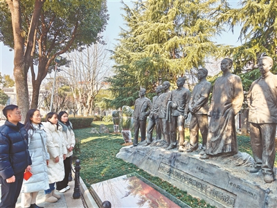 湖北省武漢市武昌區(qū)紀檢監(jiān)察干部瞻仰首屆中央監(jiān)察委員會成員銅像雕塑,緬懷革命先輩的崇高風(fēng)范,賡續(xù)紅色血脈。周茗 攝