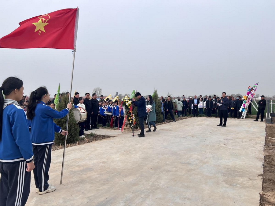 在清明節來臨之際,為緬懷革命英烈,傳承紅色基因,4月2日,山東省東營市委黨史研究院在丁莊街道劉道村烈士陵園隆重舉行“清明祭英烈”主題黨日暨“追思·為革命烈士畫像”公益活動啟動儀式。東營市委黨史研究院院長韓松林、副院長李中華,省黃三角農高區組織人事部副部長馬成金,丁莊街道黨工委副書記、辦事處主任孫建國,市直駐廣饒縣下派工作隊有關同志出席活動,市委黨史研究院全體黨員,劉道村“兩委”成員、烈士親屬和黨員代表,丁莊街道中心小學全體師生參加活動。
