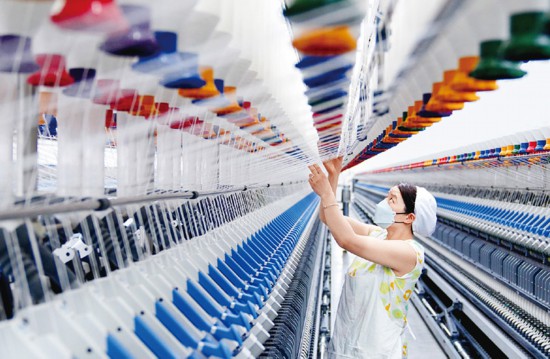 發展新質生產力不是忽視、放棄傳統產業,要用新技術改造提升傳統產業,積極促進產業高端化、智能化、綠色化。圖為2024年3月12日,在山東騰峰紡織科技有限公司,工作人員在智能化紡紗設備前忙碌。 新華社記者 郭緒雷/攝