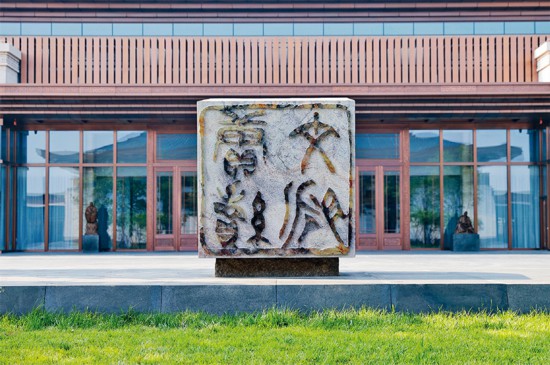 建設中國國家版本館,是以習近平同志為核心的黨中央作出的重大決策,是文明大國建設的基礎工程,是功在當代、利在千秋的標志性文化工程,充分體現了我們黨傳承發展中華文化的高度自覺、汲取歷史智慧更好走向未來的歷史主動。圖為中國國家版本館中央總館一塊篆刻著“賡續文脈”的壽山石。 中新社記者 韓海丹/攝