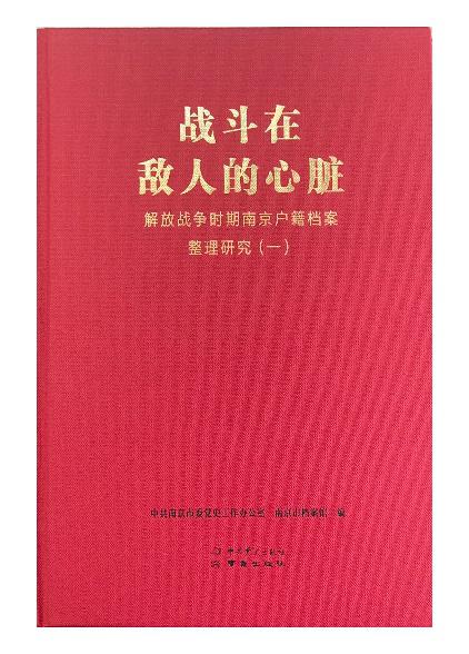 《戰斗在敵人的心臟——解放戰爭時期南京戶籍檔案整理研究(一)》由南京市委黨史工作辦公室和南京市檔案館聯合編纂,全書共計60萬字,500余幅圖片,分為導讀、戶籍卡及人物小傳、綜述文章、回憶文章、文獻資料五個部分,集中展示了100位中共南京地下黨員的戶籍檔案和人物小傳,全面概述了解放戰爭時期中共南京地方組織及下轄組織的發展沿革、組織架構和斗爭歷程;展示了來自不同戰線的中共南京地下黨員投身革命、堅持斗爭、追尋理想的人生歷程。