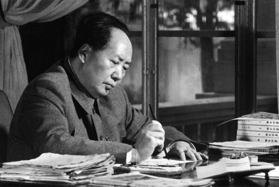 毛澤東同志能很好地把讀書與工作結合起來,案頭上總有他正在讀的書。圖為1961年,毛澤東同志在廣州伏案工作,辦公桌左側擺放的圖書為《資治通鑒》。 曹桂江/攝 新華社稿