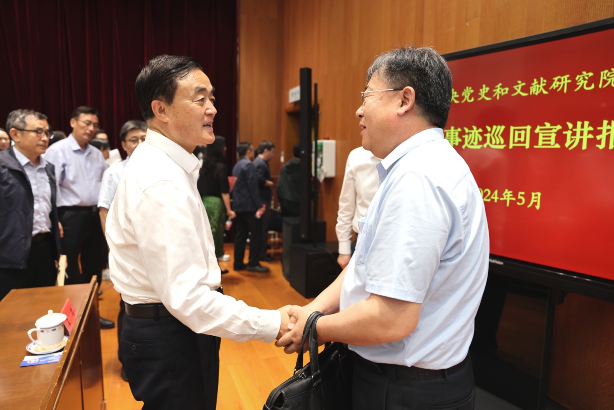 為深入開展黨紀學習教育,貫徹落實《黨史學習教育工作條例》,進一步增強黨員干部紀律意識,弘揚科學家精神,厚植愛黨、愛國情懷,5月20日、21日,中央黨史和文獻研究院邀請郭永懷事跡宣講團來院開展巡回宣講活動。首場宣講活動開始前,院長曲青山親切接見了宣講團成員。