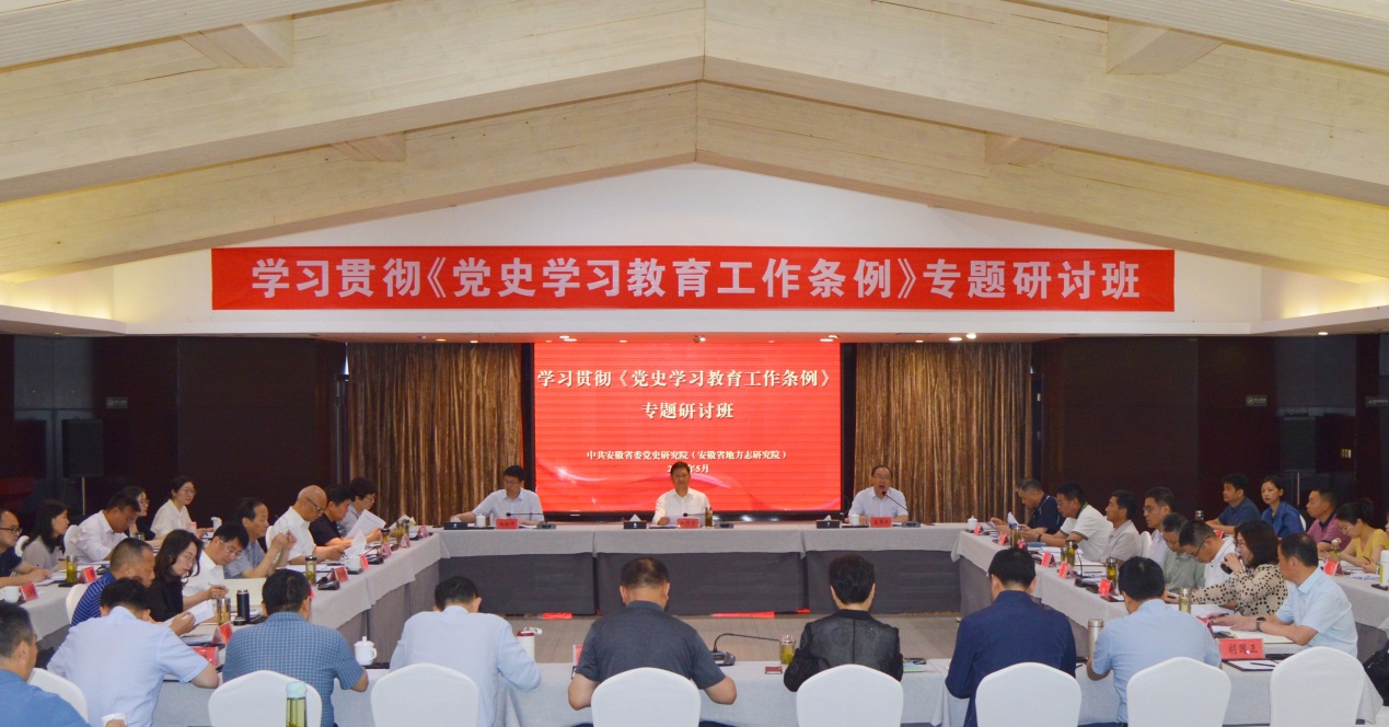 研討班上,全體人員集中觀看了中央黨史和文獻研究院院長曲青山以“新時代黨史學習教育工作的基本遵循”為題所作的《條例》宣講輔導報告。各市委黨史和地方志研究室主要負責人圍繞《條例》的學習宣傳和貫徹落實工作,從開展黨史研究、黨史著作編寫、黨史宣傳教育、黨史資料征集、紅色資源保護利用等方面作了交流研討。與會人員還參觀了大別山安徽紅色區域中心紀念館,現場接受革命傳統教育。