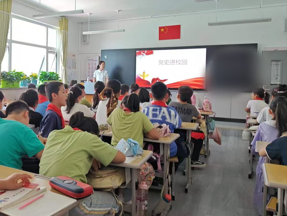 活動期間,省委黨史研究室向水車園小學四年級四班贈送了《隴原紅故事(第一輯)》《隴原紅故事(第二輯)》《隴原紅故事(第三輯)》等黨史書籍60余冊,一處干部賈玉婷為四年級四班的同學們上了一堂黨史課。