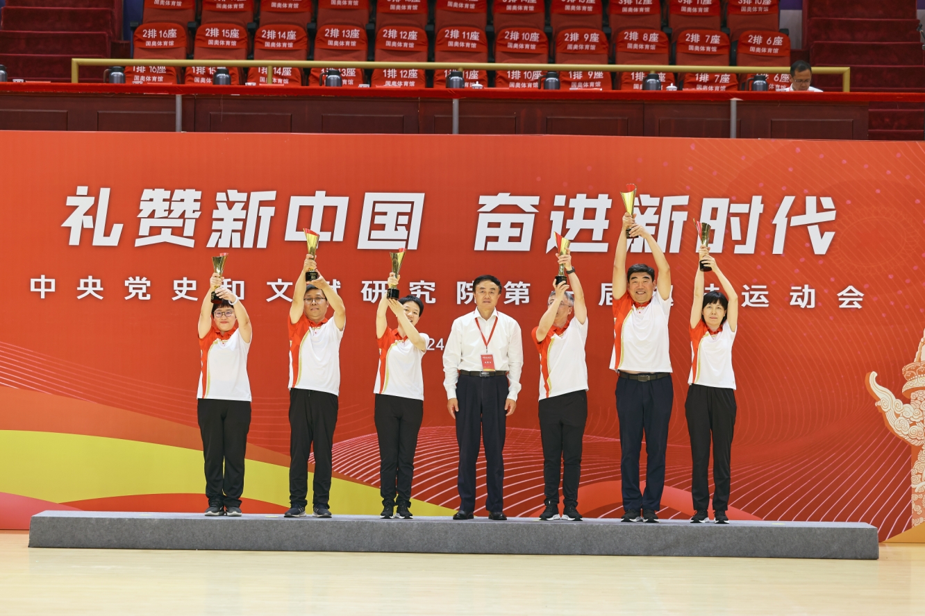 經過精彩比拼,第六研究部、科研規劃部、機關服務中心、辦公廳、第三研究部、離退休干部局等6個部門獲得團體前六名的好成績,第一研究部、第四研究部、第五研究部、第七研究部、人事局、中央編譯出版社等6個部門獲得優秀組織獎,第二研究部、對外合作交流局、信息資料館、機關黨委、中央文獻出版社、中共黨史出版社等6個部門獲得精神文明獎,院務會成員為獲獎部門頒獎。運動會在歡樂祥和的氛圍下圓滿落幕。