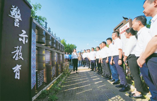 在全黨開展黨紀學習教育,是加強黨的紀律建設、推動全面從嚴治黨向縱深發展的重要舉措。當前,各地區各部門精心組織實施,不斷推動黨紀學習教育走深走實。圖為2024年5月23日,在廣西融水苗族自治縣一處廉政文化園,黨員干部接受廉政教育。 視覺中國 龍林智/攝